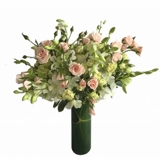 Luxuoso arranjo com orquídeas e cravo em cachepô